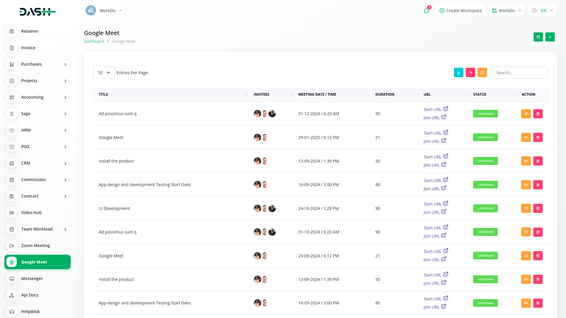 Discover the seamless collaboration of Workdo-Dash, where productivity meets innovation. Integrated with Google Meet, our platform transforms teamwork, allowing real-time collaboration and efficient meetings. Elevate your productivity and streamline your work processes with Workdo-Dash – where work meets innovation effortlessly.
